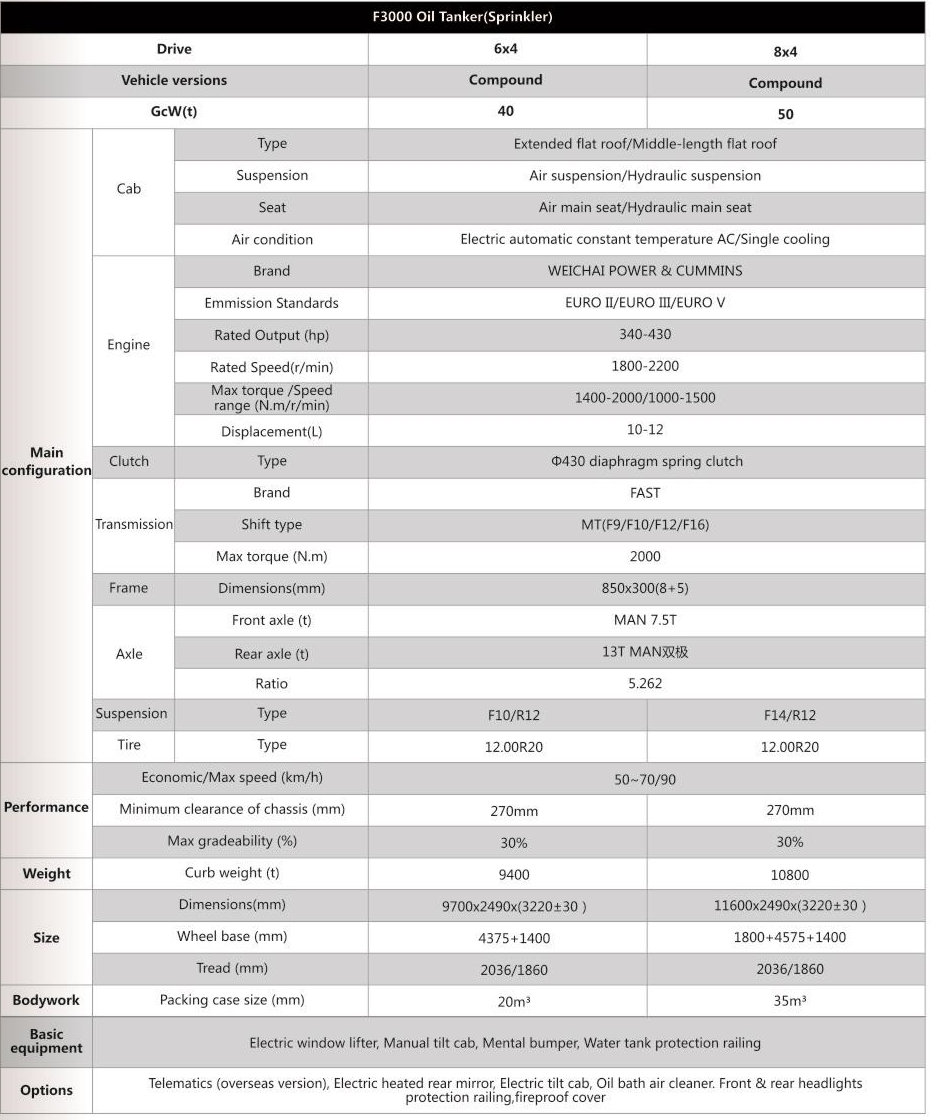 Når det gjelder produktdetaljer, er motoren til Shacman F3000 6x4 og 8x4 oljedrivstofftankbil av forskjellige modeller, med maksimal hestekrefter opp til 400 hk, høyt dreiemoment, god akselerasjonsytelse, og kan tilpasse seg forskjellige arbeidsforhold. Overføringen er for det meste rask manuell girkasse, som kan realisere uendelig hastighetsendring, utvide rekkevidden for kjørehjulmoment og hastighetsendring og forbedre tilpasningsevnen til lastebilen. De indre knivene i den topplastende tanken dannes i en gang ved å snurre med imitasjonslinjespinnemaskin for å forbedre styrken og forseglingen; Det ytre av Shacman F3000 6x4 og 8x4 olje drivstofftankbil blir skutt penet for å eliminere sveisestress og fjerne rust for å forlenge levetiden. Shacman F3000 tankbilen er også utstyrt med avansert utstyr som ubåtventiler, europeiske standard tankporter, anti-overflow sonde stenger, og olje- og gassgjenvinningssystemer for å sikre sikkerhet og miljøvern under transport.
