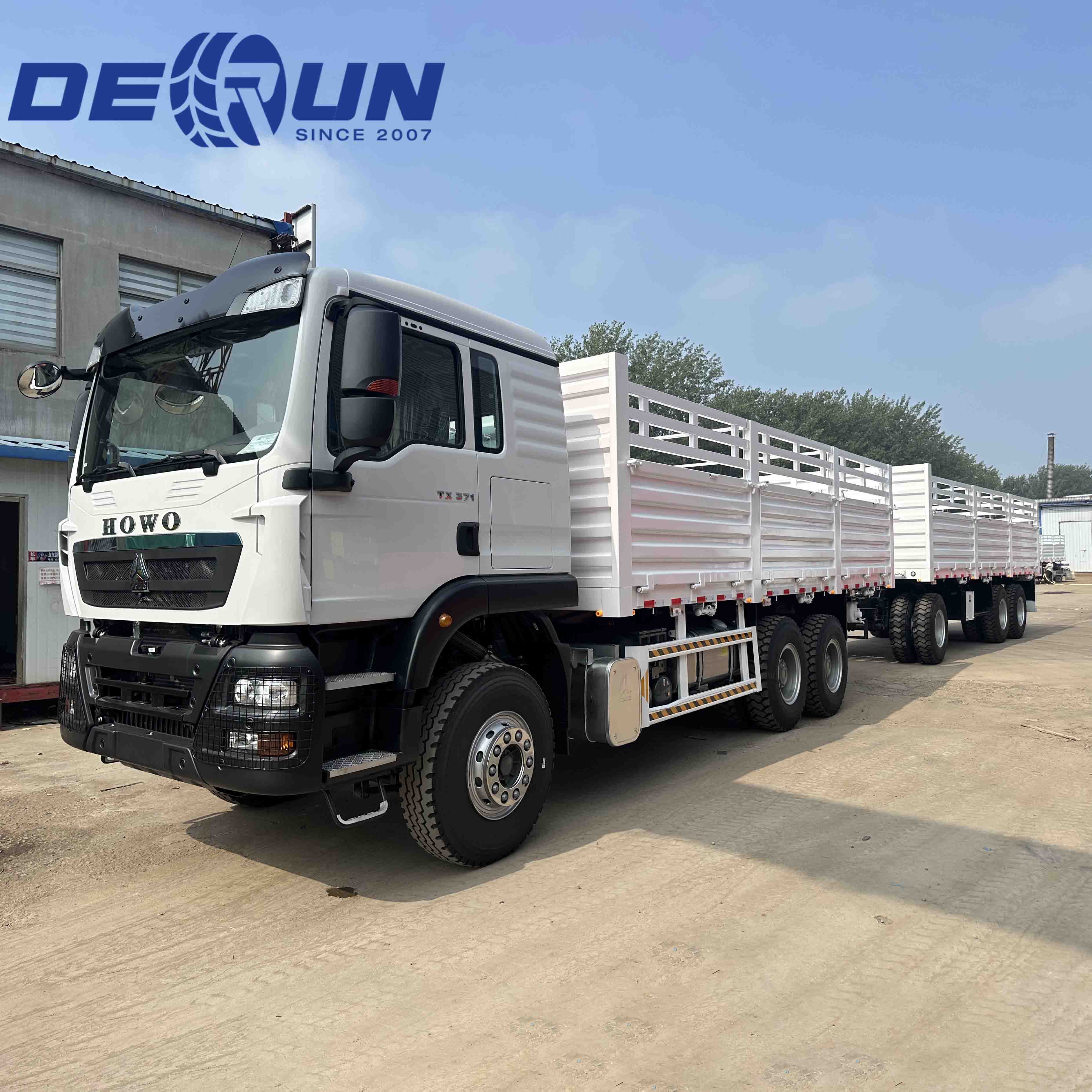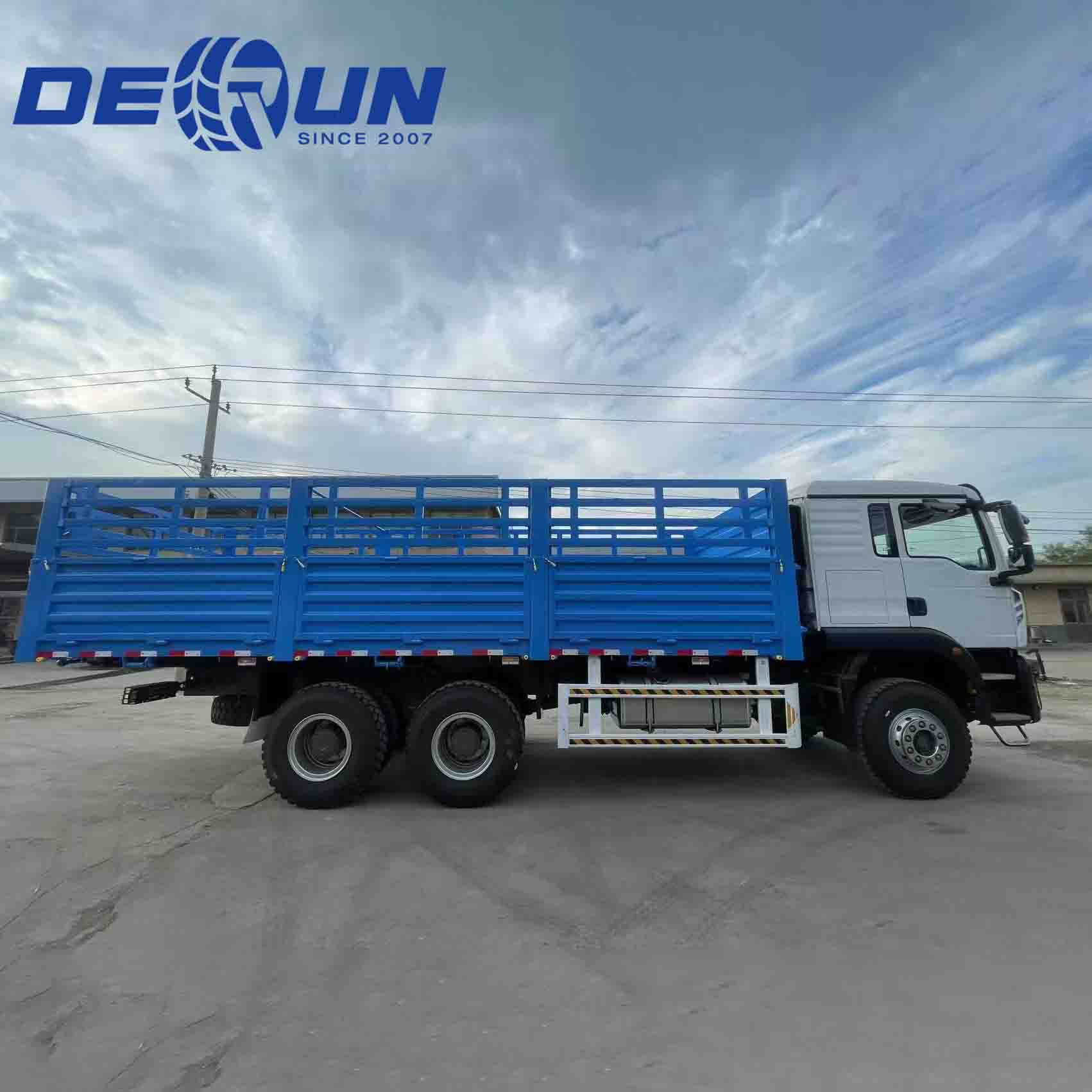 Howo TX Fence Cargo Truck med full trailer er en langdistanselogistikkløsning som er spesielt designet for den østafrikanske regionen. Drosjen er en Howo TX-førerhus med høyt tak, utstyrt med en felles jernbanemotor med høy hestekrefter, 6 × 4-stasjon og en forsterket dobbel reduksjon bakakselstruktur. Den fulle traileren er en traksel-lastekasse-type, med slepens og hovedtrailer-salen designet til den østafrikanske standarden på 50 mm. Gjerde -lastebilen med tegnetrailer har en robust design med høy bakkeklaring, noe som sikrer utmerket manøvrerbarhet på høylandet i Etiopia, portene til Djibouti og ørkenveiene i Somalia.